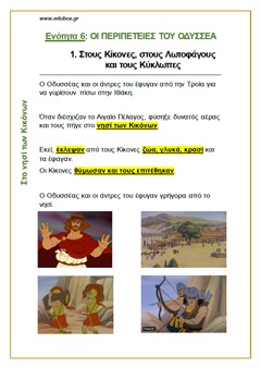 1. Στουσ κικονεσ, στη χωρα των λωτοφαγων και στουσ κυκλωπεσ